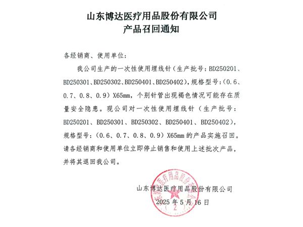 山東博達(dá)醫(yī)療用品股份有限公司是生產(chǎn)可吸收性外科縫線專業(yè)廠家,主要產(chǎn)品有可吸收縫合線 、內(nèi)窺鏡圈套線、穴位埋線、快吸收美容線、醫(yī)用羊腸線 膠原蛋白線以先進(jìn)的生物技術(shù)提取了健康哺乳動(dòng)物內(nèi)臟的膠原蛋白為基材,采用先進(jìn)的工藝加工而成,線體的主要成分為高純度膠原蛋白,并獲得了國(guó)家發(fā)明專利,頒布了YZB/國(guó)6301-2013《可吸收性外科縫線》產(chǎn)品標(biāo)準(zhǔn),并通過了ISO9001:2015和ISO13485:2016質(zhì)量管理體系認(rèn)證。